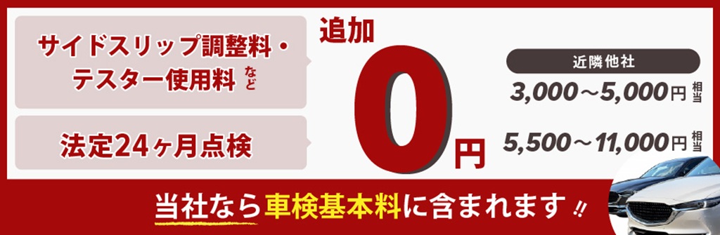 当店では上記のすべて、ホームページに記載してある車検基本料に含まれていますので、ご安心ください。